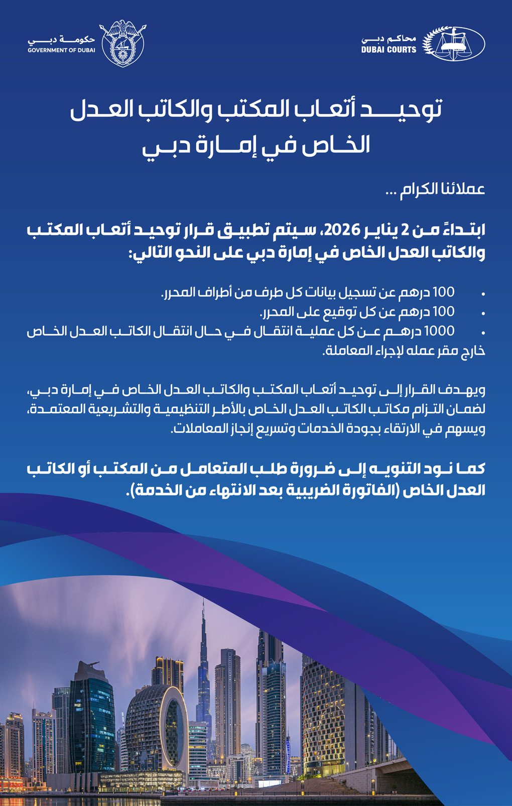 توحيد أتعاب المكتب والكاتب العدل الخاص في إمارة دبي