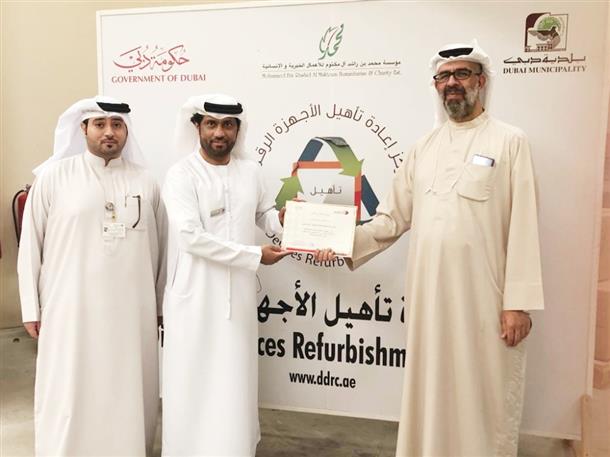 السيد قاسم محمد رفيع مسؤول مركز إعادة تأهيل الأجهزة الرقمية بتكريم محاكم دبي، وأشاد